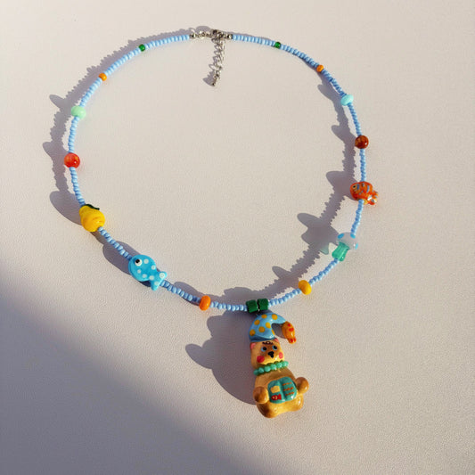 【One-off】Kitty Flying on the Fish Beaded Necklace 🐠