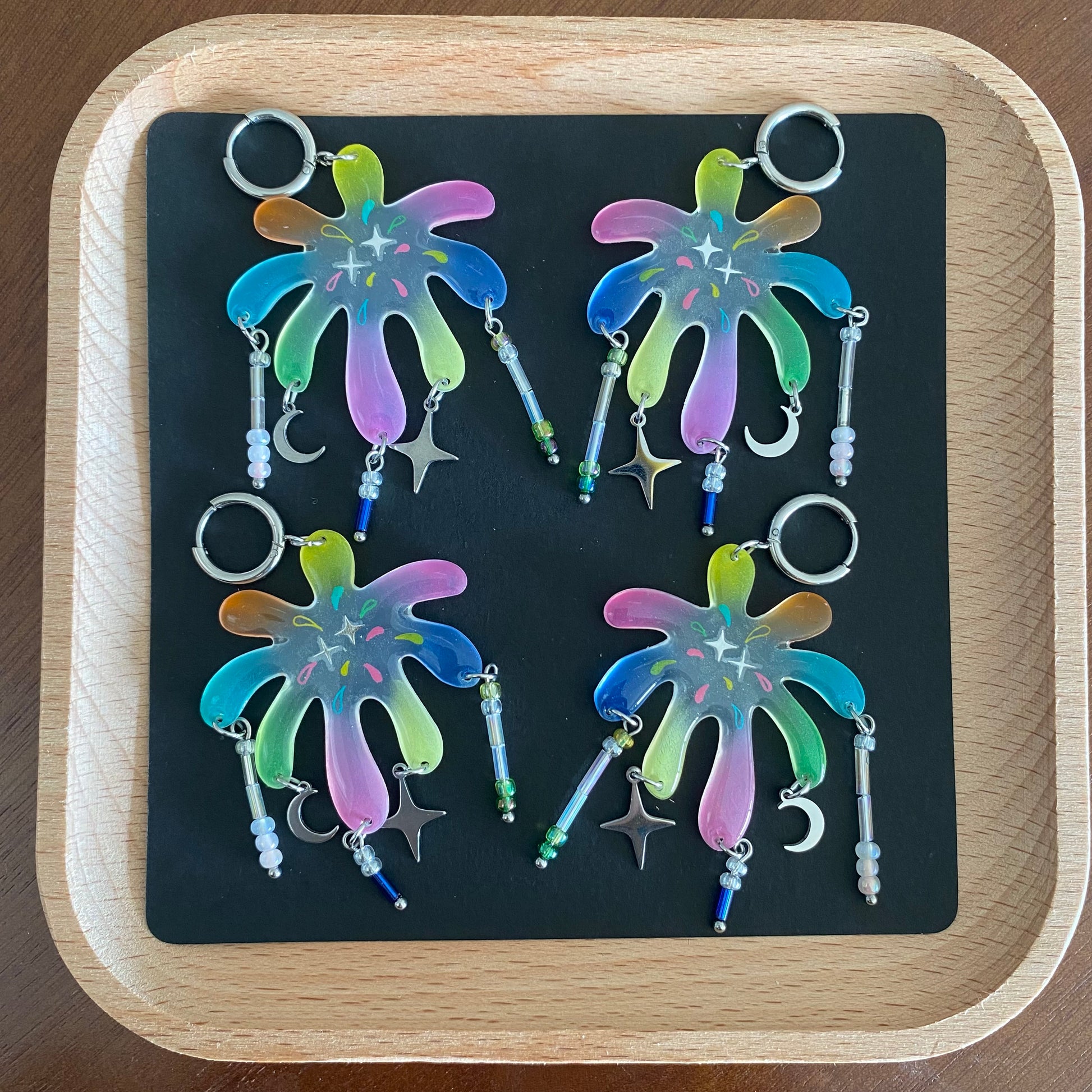 Stainless steel ear hoops, stars and moons;